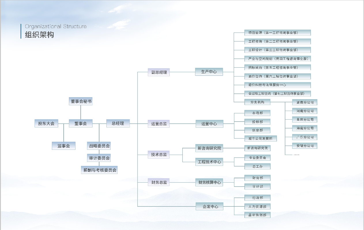 公司下設(shè)工程咨詢事業(yè)部、招標(biāo)代理事業(yè)部、工程造價咨詢事業(yè)部、規(guī)劃設(shè)計事業(yè)部等機(jī)構(gòu)...