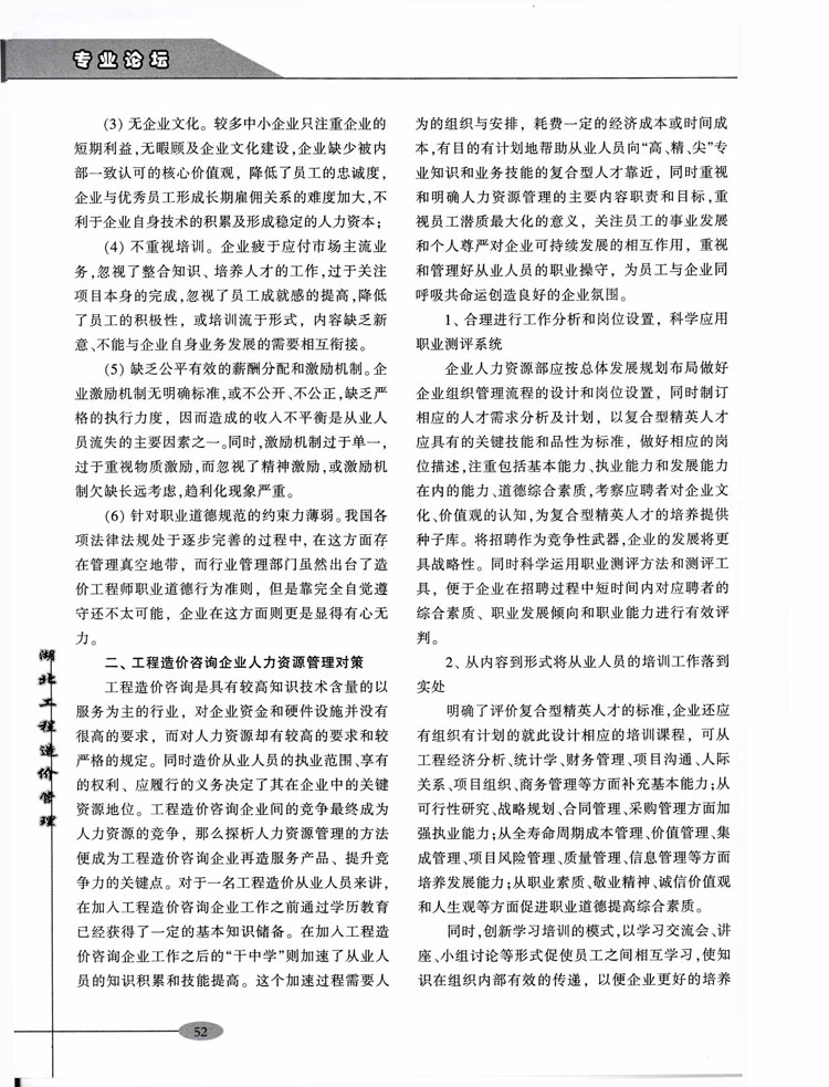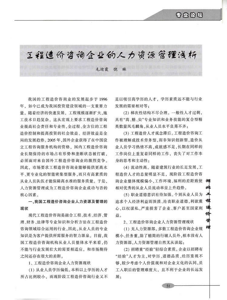 熱烈祝賀我公司員工所著文章《工程造價咨詢企業(yè)的人力資源管理淺析》在《湖北工程造價管理》雜志