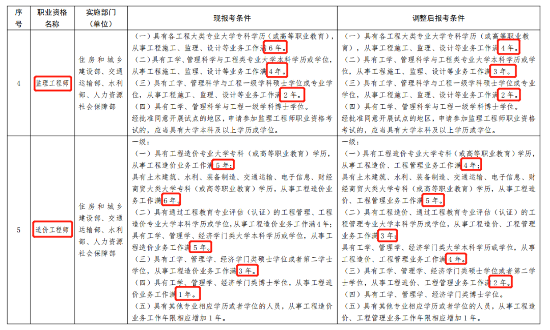 一、《部分準(zhǔn)入類職業(yè)資格考試工作年限要求調(diào)整方案》(見附件)自2022年起實(shí)施。除調(diào)整考試工作年限要求外,13項(xiàng)準(zhǔn)入類職業(yè)資格的其他考試報(bào)名條件不變。
