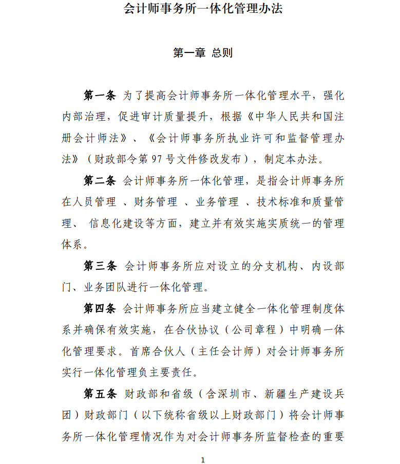 附件:會計師事務(wù)所一體化管理辦法
