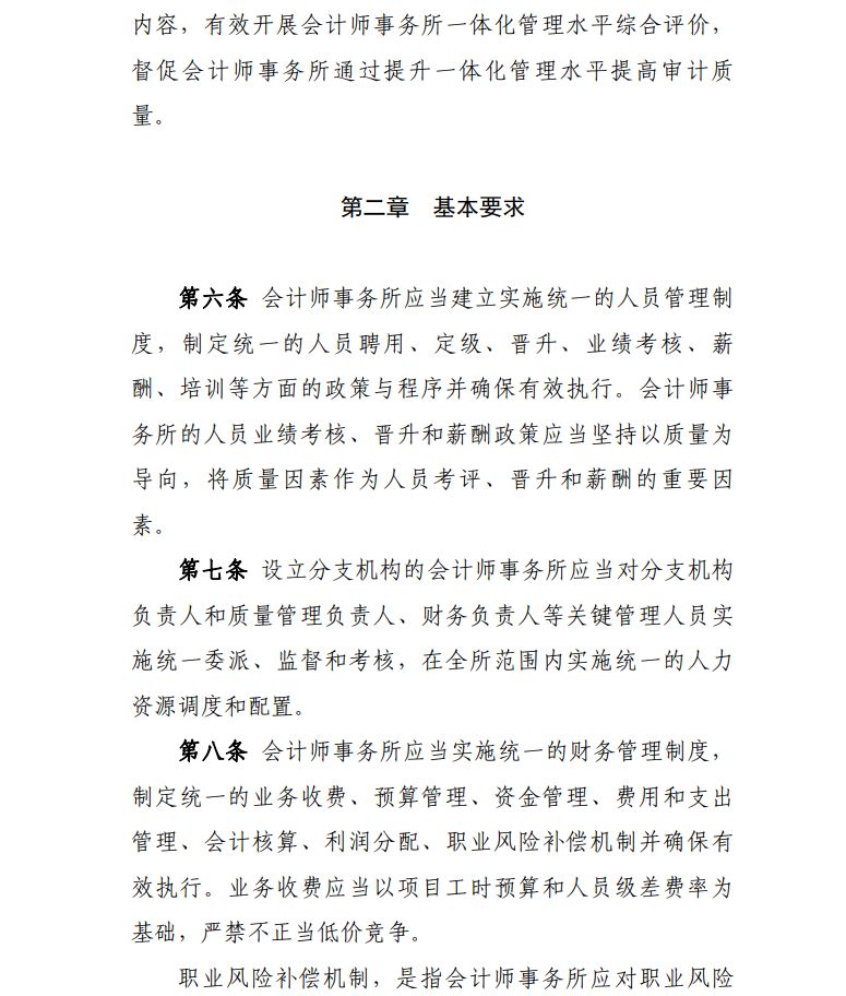 為貫徹落實《國務(wù)院辦公廳關(guān)于進(jìn)一步規(guī)范財務(wù)審計秩序促進(jìn)注冊會計師行業(yè)健康發(fā)展的意見》(國辦發(fā)〔2021〕30號)有關(guān)要求,加強(qiáng)會計師事務(wù)所內(nèi)部治理,提高質(zhì)量管理水平,根據(jù)《中華人民共和國注冊會計師法》、《會計師事務(wù)所執(zhí)業(yè)許可和監(jiān)督管理辦法》(財政部令第97號文件修改發(fā)布),我們制定了《會計師事務(wù)所一體化管理辦法》,現(xiàn)予印發(fā),自2022年10月1日起執(zhí)行。