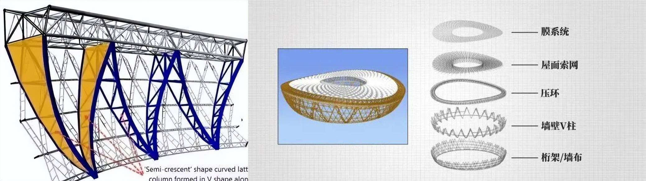 盧賽爾體育館是全球最大跨度雙層交叉索網(wǎng)屋面單體建筑,并且有著世界上最復(fù)雜的索膜結(jié)構(gòu)體系,屋面索網(wǎng)結(jié)構(gòu)跨度達(dá)274米,鋼結(jié)構(gòu)高空吊裝最大的單體重達(dá)450噸,懸挑距離為76米,項(xiàng)目包含30多個(gè)專(zhuān)業(yè)大類(lèi),45個(gè)專(zhuān)項(xiàng)設(shè)計(jì),99個(gè)電子系統(tǒng),可以說(shuō)是目前為止專(zhuān)業(yè)接口最多、技術(shù)最先進(jìn)的體育場(chǎng)館。