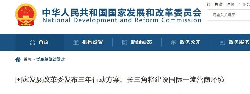 4.國家發(fā)展改革委印發(fā)《長三角國際一流營商環(huán)境建設(shè)三年行動方案》