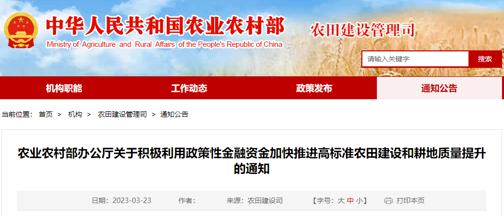 為貫徹落實黨中央、國務(wù)院決策部署,進一步用好投融資政策工具,支持政策性金融機構(gòu)立足職能定位,在業(yè)務(wù)范圍內(nèi)提供信貸支持,加快高標準農(nóng)田建設(shè),加強農(nóng)田基礎(chǔ)設(shè)施建設(shè)和運營管護,提升耕地質(zhì)量,經(jīng)商中國農(nóng)業(yè)發(fā)展銀行等單位,現(xiàn)就有關(guān)事項通知如下: