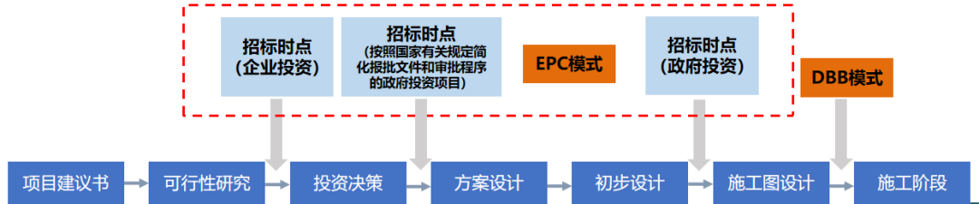 基于國(guó)內(nèi)“弱信任”的市場(chǎng)環(huán)境,政府投資項(xiàng)目以初步設(shè)計(jì)為招標(biāo)節(jié)點(diǎn),從而將EPC項(xiàng)目的設(shè)計(jì)分為招標(biāo)前和招標(biāo)后兩階段,第一個(gè)階段是業(yè)主委托設(shè)計(jì)院進(jìn)行方案設(shè)計(jì)和初步設(shè)計(jì),第二階段是總承包商中標(biāo)后進(jìn)行施工圖設(shè)計(jì)。