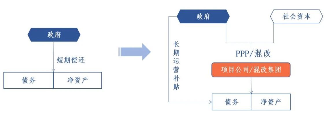 (2)對具備經(jīng)營條件的政府隱性債務(wù)項(xiàng)目,可通過引入社會資本等方式,將其改造為社會資本的債務(wù);