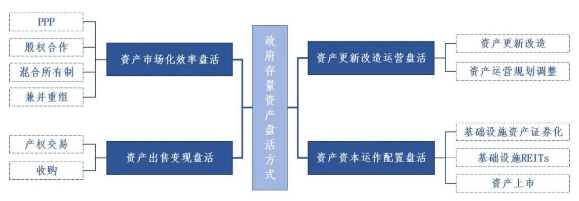 ? 資產(chǎn)市場化效率盤活,是指通過PPP模式、混合所有制改革、股權(quán)合作等市場化方式,引入并借助第三方的專業(yè)化技術(shù)、管理經(jīng)驗(yàn)等,提高資產(chǎn)運(yùn)營效率與質(zhì)量,進(jìn)而盤活存量資產(chǎn)。