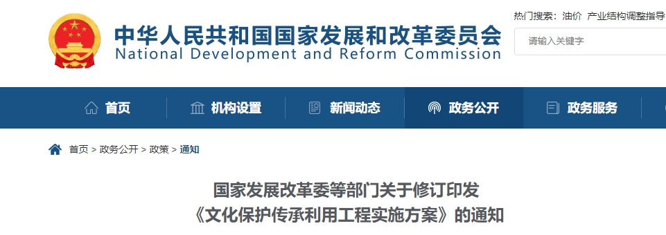 日前,國家發(fā)展改革委會同住房城鄉(xiāng)建設(shè)部、中央宣傳部、文化和旅游部等部門對《文化保護傳承利用工程實施方案》進(jìn)行了修訂。