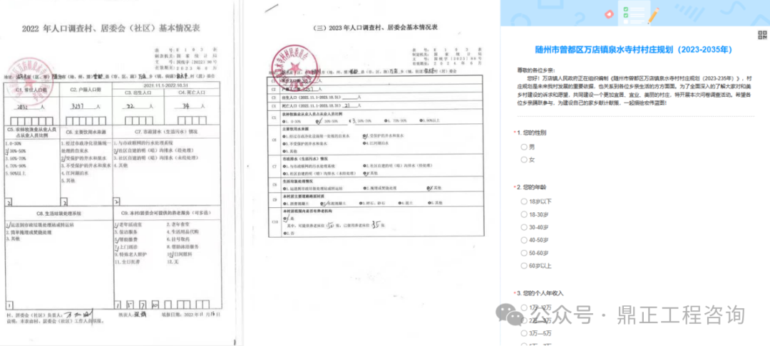 一方面,通過制定村莊基礎資料調查表、調查問卷,向村委及村民收集資料,充分掌握規(guī)劃范圍內的自然資源狀況、人口狀況、土地利用、各類基礎設施建設、產業(yè)發(fā)展和社會經濟發(fā)展等基礎資料。