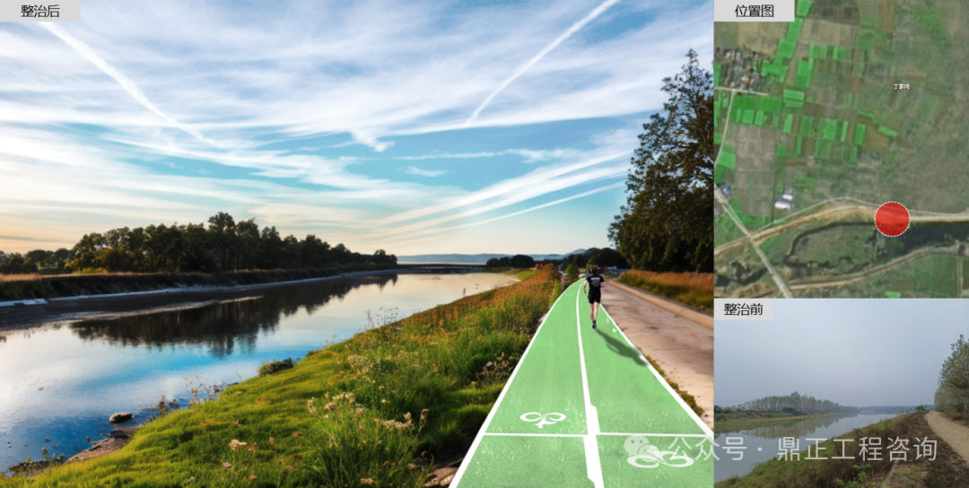 對雙河村漂水河駁岸進行整治,對水系進行清淤(恢復河床)、清障(疏通河道)、清理垃圾(清潔河道)、保持河道流暢干凈。對現(xiàn)狀岸邊植物雜灌木清除梳理,局部可增補色葉植物,豐富季相變化。增加濱水休閑步道,打造濱水開放空間。