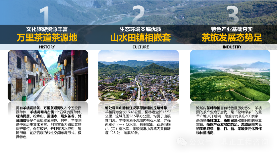 以本項(xiàng)目為例,羊樓洞港小流域地處幕阜山脈和江漢平原接壤的丘陵地帶,流域內(nèi)有羊樓洞港、柳林港兩條水系,整體呈現(xiàn)山、水、田、鎮(zhèn)相嵌套的格局;流域內(nèi)擁有明清時期國際茶葉貿(mào)易名鎮(zhèn)——羊樓洞古鎮(zhèn),這里是歐亞萬里茶道的源頭;流域內(nèi)茶葉種植特色歷史悠久,茶旅產(chǎn)業(yè)發(fā)展態(tài)勢正足,并且已初步形成茶、稻、竹、芍、果等多元化農(nóng)作物種植格局。