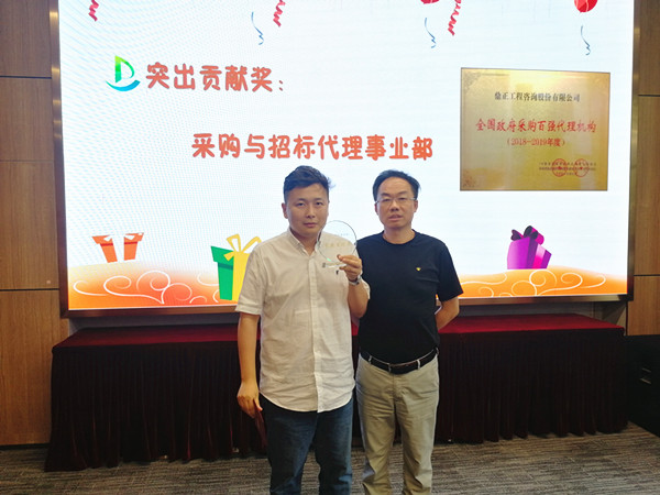 值得一提的是,今年七月我司憑借專業(yè)的服務(wù)、完善的內(nèi)控制度從近千家政府采購(gòu)代理機(jī)構(gòu)中脫穎而出,獲得首屆“全國(guó)政府采購(gòu)百?gòu)?qiáng)代理機(jī)構(gòu)(2018-2019年度)”榮譽(yù)稱號(hào),這一榮譽(yù)稱號(hào)離不開(kāi)采購(gòu)與招標(biāo)事業(yè)部全體成員積極主動(dòng)的參評(píng)。董事長(zhǎng)王雁然為采購(gòu)與招標(biāo)事業(yè)部頒發(fā)突出貢獻(xiàn)獎(jiǎng),并號(hào)召大家向采購(gòu)與招標(biāo)事業(yè)部學(xué)習(xí)大局意識(shí)和吃苦耐勞的工作作風(fēng)。