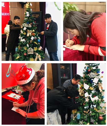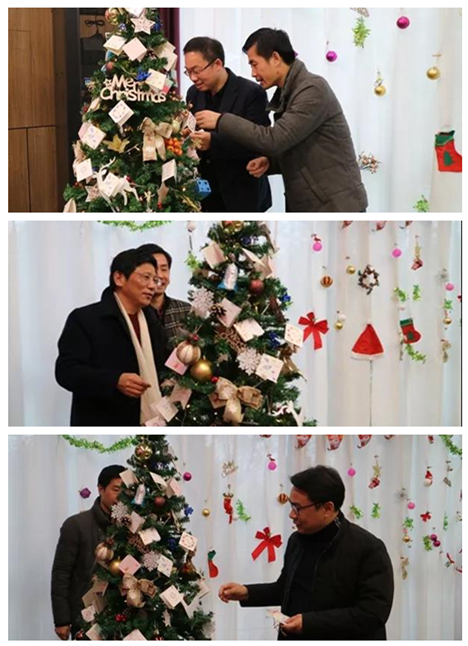 平安夜,行政人事部的同事們化身“圣誕老人”,貼心的為每一位同事準(zhǔn)備了平安果;由鼎正大家庭共同裝飾的圣誕樹掛滿了大家親手寫的祝??ㄆ?,為圣誕節(jié)的到來更添一份濃濃的節(jié)日色彩。