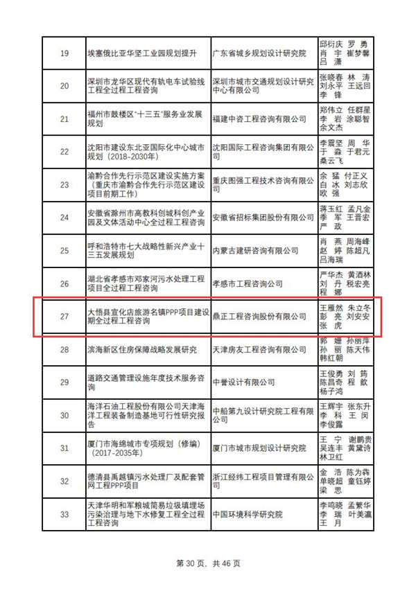 2019年12月27日,中國(guó)工程咨詢協(xié)會(huì)公布了“2018年度全國(guó)優(yōu)秀工程咨詢成果獎(jiǎng)”獲獎(jiǎng)項(xiàng)目名單,由鼎正咨詢獨(dú)立編制完成的《大悟縣宣化店旅游名鎮(zhèn)建設(shè)PPP項(xiàng)目全過(guò)程工程咨詢報(bào)告》榮獲全國(guó)優(yōu)秀工程咨詢成果三等獎(jiǎng)!