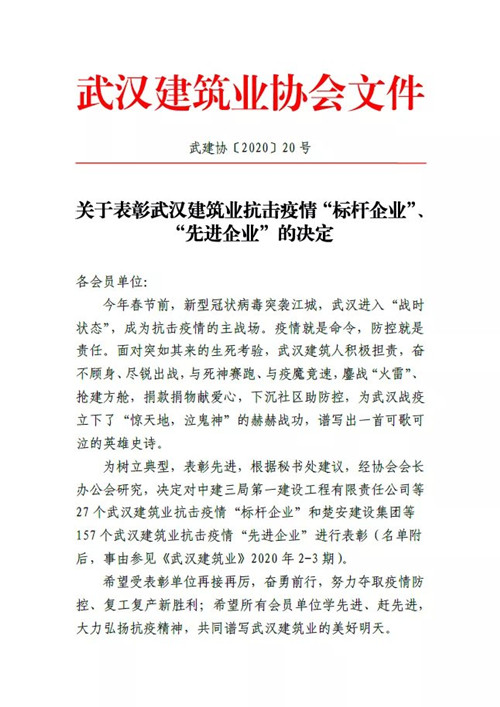 鼎正印記 | 榮獲武漢建筑業(yè)抗擊疫情先進(jìn)企業(yè)