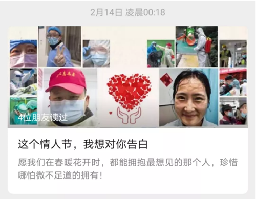 2月14日情人節(jié),我們向全國各地奮戰(zhàn)在一線從未后退的醫(yī)護(hù)工作者、各條戰(zhàn)線上的志愿者、堅(jiān)守崗位的工作者們告白。希望通過這篇短文傳遞的正能量,牽動(dòng)我們把更多的大愛之心傳播到社會(huì)的每一個(gè)角落。