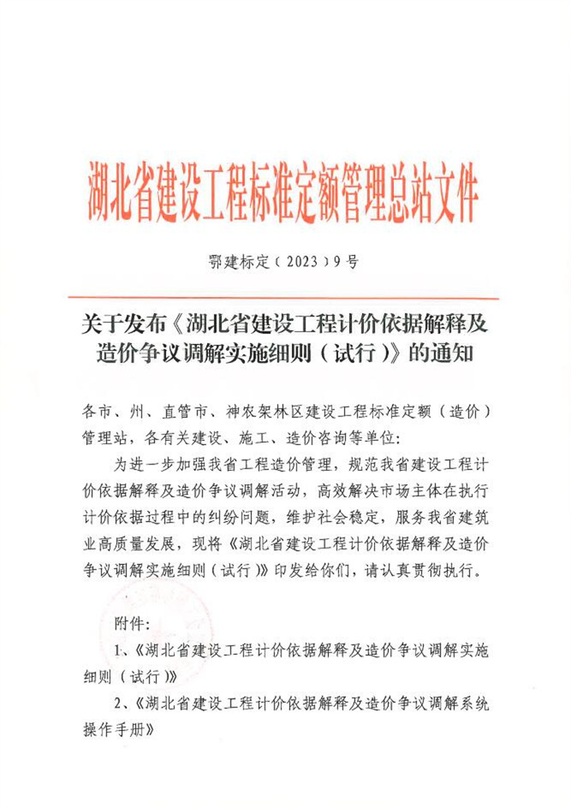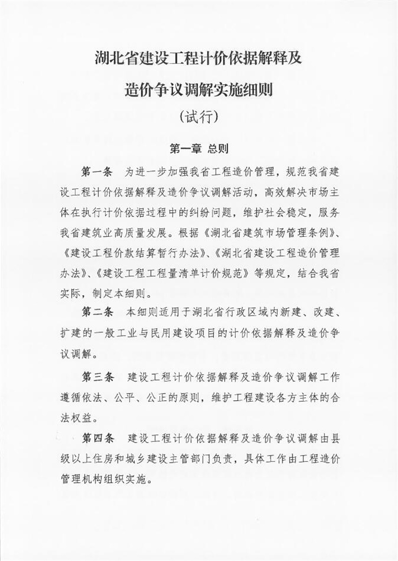 轉(zhuǎn)發(fā)關(guān)于發(fā)布《湖北省建設(shè)工程計(jì)價(jià)依據(jù)解釋及造價(jià)爭(zhēng)議調(diào)解實(shí)施細(xì)則(試行)》的通知