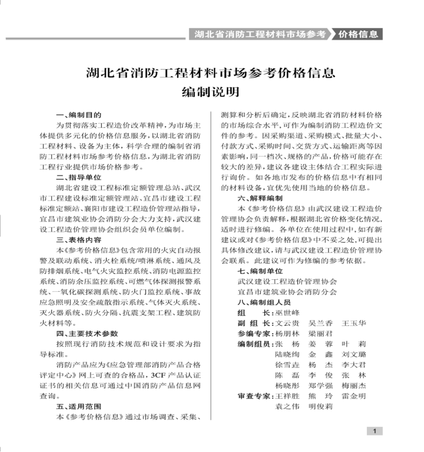 武漢建設(shè)工程造價(jià)管理協(xié)會(huì)、宜昌市建筑業(yè)協(xié)會(huì)消防分會(huì)聯(lián)合組建了編委會(huì),通過市場(chǎng)調(diào)查、數(shù)據(jù)分析、整理歸類、專家審查等環(huán)節(jié),保證了價(jià)格信息的科學(xué)性、合理性、準(zhǔn)確性、完整性。